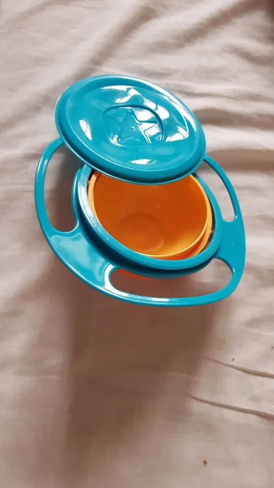 Based on the principle of the gyroscope, no matter how you spin it or twist it, the content stays where it is. Recommended especially for children who like to leave with food in the house or can be used as a toy. It has an edge that can be easily grasped by children.